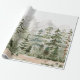 Papel De Presente Floresta de Pinheiros Verdes com Aquarelas em Mont