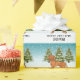 A ilustração original de um bonito cão da raça Vizsla Húngara, de Destei. O cão é colocado numa cena de inverno com três árvores de abeto verde. O fundo é um gradiente azul a branco que dá à design aquele olhar frio do dia de inverno. Há uma área de texto personalizável que agora diz: "Feliz Natal!" junto com um nome personalizado.
