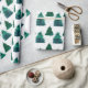 Pinheiros verdes e pontos em fundo branco, este papel de embrulho é divertido para dar presente de Natal.