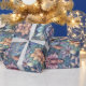 Papel De Presente FLower Damask Blue Dourado