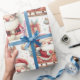Um papel de embrulho vívido que mostra ilustrações de Natal encantadoras traz calor e alegria. Papais noeis, renas, e ornamentos alegres dançam pela superfície, evocando um espírito de feriado caprichoso.