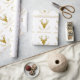 Este papel de embrulho apresenta uma bela imagem de forma falsa de folha de ouro texturizada de cervo com algumas ramificações de árvores. Há também uma área de texto personalizável que diz agora "Feliz Natal". Notem: A textura da folha de alumínio não é real. É uma imagem impressa imitando a aparência da folha de ouro.