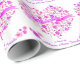 Bonito papel de embrulho de presente de chá de panela de casamento ideal para embrulhar um presente muito especial para a nobre noiva ser. Flores bonito de aquarela em spray em forma de coração com fita em plástico roxo, rosa, vermelho e cinza de presente de chá de panela floral. Edite este presente de arte com seu nome de noivas honradas. Arte de design e aquarela exclusiva de Sarah Trett.