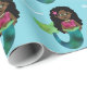 As meninas personalizaram o afro-americano, preto, papel de envolvimento étnico dos miúdos da folha do falso da sereia. O fundo bonito, azul gosta do oceano. A sereia pequena adorável com falso foil a cauda verde, a camisola de alças cor-de-rosa magenta e a estrela do mar cor-de-rosa em seu cabelo preto escuro. Personalize com nome no roteiro branco. Edite para mudar escolhas da pia batismal. Sereia, merman, e artigos de coordenação do pirata. Contato para pedidos da ordem feita sob encomenda. Sereia, oceano, design temático da vida marinha. ww.SamAnnDesigns.com