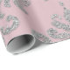 Papel De Presente Folha rosa Damask Pastel Real de Prata Metálica