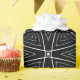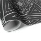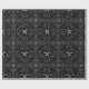 Este papel de empacotamento apresenta um design único e complexo. Um gráfico repetitivo de linhas concêntricas forma uma flor única, triangular, em forma de folha, que é apresentada em branco marcante contra fundo preto, criando um padrão floral elegante e abstrato.