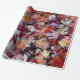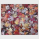 Esta design apresenta uma foto de muitas folhas de árvores caídas no outono, com cores como vermelhos, laranjas, amarelos e castanhos.