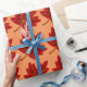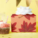 O mapa vermelho deixa design sobre um papel cor laranja de queda rústica ou papel de dissociação.