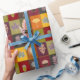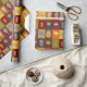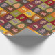 O papel de empacotamento das Folhas Inclusas tem um padrão vermelho, laranja, amarelo, verde e marrom, com uma aparência de falso colcha, com miniaplicação falsa de folhas, cones de pínus e bolotas. Você pode fazer com que essas folhas fiquem impressão ou maiores neste papel de embrulho. Um belo pacote de presentes para seus presentes durante a temporada do outono.