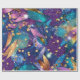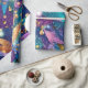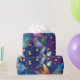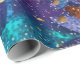Papel De Presente Folhas Douradas e Azuis Roxas Esparsas