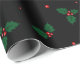 Um padrão de Natal eterno, com folhas verdes e ocas vibrantes e bagas vermelhas brilhantes sobre um fundo preto elegante. Perfeito para decoração festiva e presentes sazonais elegantes!