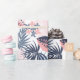 Papel De Presente Folhas tropicais Marinho pincel cor-de-rosa pitada