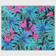 Papel De Presente Folhas tropicais no presente azul e rosa