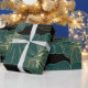 Design Art-Deco com folhas verdes em ouro sobre fundo preto