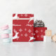 Papel De Presente Forma de veado branco em vermelho com flocos de ne