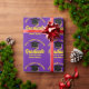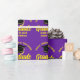 Este moderno papel de embrulho de festa de formatura mais velho roxo e amarelo personalizado apresenta a tipografia clássica do seu segundo grau ou nome da faculdade para a classe de 2025. Personalize com o seu ano de graduação com o script de chic manuscrito e o boné de formando preto para o encapsulamento de presentes personalizados do formando excelente.