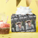 Papel de empacotamento de graduação com o texto "FORMANDO" e seu ano em uma fonte de esportes universitários com o nome do formando abaixo e foto personalizada acima. Texto branco sobre fundo de cor preto ou personalizado.