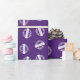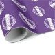 Este padrão de graduação moderno e feminino tem um círculo branco e escrevendo que se parece com um carimbo sobre um fundo roxo. Os termos "Formando", "classe de" e "ano" figuram em todo o texto. Basta entrar no seu ano de graduação para criar um papel de embalagem legal e único.