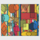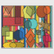 Este papel de embrulho tem um design Bauhaus inspirado em formas e linhas em diferentes tons de cores modernas do século médio.