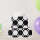 Padrão xadrez criado com quadrados e círculos em preto e branco