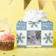Foto da família bonita Blue Snowflake Papel de enrolamento de Natal. Fundo azul e branco com um belo floco de neve. Feliz branca, feliz, tipografia de Jolly. O design tem uma foto personalizada de um filhote de cachorro - insira seu cachorro favorito ou qualquer outra foto de animal de estimação no modelo e faça seu papel de Natal exclusivo.