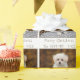 Papel De Moldagem De Foto De Cão De Pet Feliz De Natal. Foto personalizada de animal sobreposta por padrão de estrela branca, texto Feliz de Natal, nome da família e ano