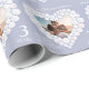 O papel de embrulho do aniversário de casamento em pedra e cinzas azuis. Personalize este artigo de aniversário com seu próprio nome de foto e casais e o ano do aniversário. Belo efeito de pedra preciosa em pedra preciosa em forma de coração segundo papel de embrulho de Aniversário de Casamento, ideal para embrulhar um presente especial para um terceiro aniversário de casamento, que está associado a pedra lunar e um coração simboliza o amor. Arte gráfica exclusiva e design por Sarah Trett para www.mylittleeden.com e www.mylittleedenweddings.com no Zazzle.