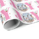 Alegria rosa com bagas, fotos de Natal, papel de enrolar. Mostra um padrão da palavra "JOY" em rosa com bagas vermelhas e verde enquanto em vez da letra "O" está sua foto. Personalize com sua própria foto e texto.