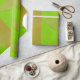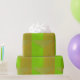 Design geométrico em forma de Y onde as linhas racharam o quadrado em três áreas. Cada área com uma cor leve diferente, tudo no verde para amarelar tons. O esquema de cores está para fora como fresco, um toque do cubism, de algum modo etnic, um pouco de psicadélico, e original.