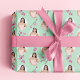 Este doce e feminino papel de embrulho está pronto para ser personalizado com até 8 fotos suas. Você pode usar a mesma foto ou 8 fotos diferentes. As fotos aparecem dentro de uma forma elegante de quadro e são colocadas sobre um fundo verde de menta que é decorado com flores de cereja cor-de-rosa.