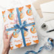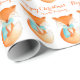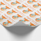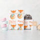 Personalize o fox cub de papel fox embrulhado em um padrão de design de repetição quente em um fundo branco de neve. Personalize este artigo festivo sazonal da arte da raposa com sua própria saudação e nome da família. Lê Feliz Natal da família Fox. Ideal para os presentes de Natal de famílias e empresas associadas a raposas ou animais. Raposa branca pintada em aquarela e projetada por Sarah Trett.