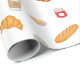 This wrapping paper features a soft pastel pattern inspired by a classic French bakery morning — croissants, baguettes, coffee cups, and sweet pastries illustrated in a warm kawaii watercolor style.