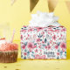 Bonito papel de embrulho de presente Feliz de Aniversário floral com esquema de cor patriótico vermelho, branco e azul.