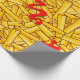Um desenho animado hilariante que embrulhava papel com batatas fritas espalhadas com ketchup vermelho.