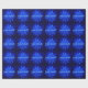 Um enxame de flocos de neve fractais azuis. A leitura de texto "Froliche Weihnachten" aparece em azul e branco brilhantes.