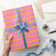 Papel De Presente Fuchsia e padrão amarelo de cinco faixas