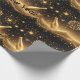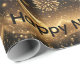 Midnight gold theme blends the allure of night elegance with the celebratory sparkle of overflowing champagne. The gift-wrapping paper features sparkling champagne bottles, fireworks, dark night and liquid gold. Perfect for elegance and grandeur. The text "Happy New Year" can be easily customized. Perfect for a matching theme New Year celebration set.