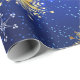 Papel De Presente Fundo Azul XMAS com Flocos de Neve Ouro