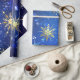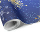Papel De Presente Fundo Azul XMAS com Flocos de Neve Ouro