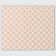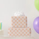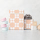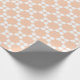 Um padrão geométrico repetitivo de formas circulares brancas entrelaçadas em um fundo de pêssego, criando um desenho de treliça simétrica e contínua.