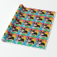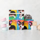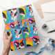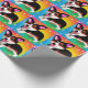Funny Corgi Puppy Dog with green, yellow, blue and more colors in the background.