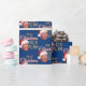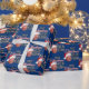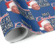 Imagem engraçada do Presidente Donald Trump vestindo um chapéu de Papai Noel com fundo azul. Um belo e humorístico papel de embrulho político para todas as suas necessidades de Férias. Natal em listras canaviais com luzes e diversão. Enrole um presente para sua mãe, pai, marido, esposa ou amigos apoiadores Trump. Opcional para alterar a cor escolhendo "personalizar mais"