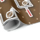 Fundo castanho com gol de campo e patter de futebol. Este presente seria excelente para um presente de festa de aniversário para crianças esportivas, um jogador de futebol, treinador ou fã de esporte. O papel é de alta qualidade e espesso.