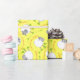 Um rolo de papel de enrolamento para personalizar, com um padrão divertido de ovelhas em quadrinhos e 'Cymru am Byth' em vermelho, em um fundo amarelo sunshiny que você pode alterar se desejar, usando o botão Editar > Fundo.