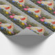 Esta galinha branca pequena festiva senta-se em uma grinalda decorada com enfeites de natal. Uma torção do divertimento, a colorida e a cómico em um tema do Natal.