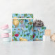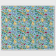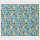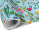 Papel De Presente Galinhas e flores silvestres em azul-bebê