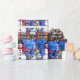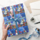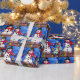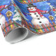 Pintura de aquarela original de Sandra Gale, de um tradicional homem de neve parado em frente a uma cerca de piquete com luzes de Natal brilhantes refletindo sobre a neve do inverno. Pássaros, casas de pássaros, e Enfeites de natal fazem disso uma cena clássica de Natal que parece excelente em papel de embrulho, cartões de natal e muito mais!