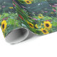 jardim romântico de moda antiga com margaridas, cosmos e girassóis - forrados nas costas com pinheiros brancos.