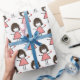 Um bonitinho com cabelo 3D está vestindo um vestido de gingham vermelho e branco, tênis e pérolas, e está segurando um coração vermelho sobre um fundo branco. A cor de fundo pode ser alterada.
