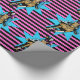 Cowgirl, correndo impressão a cavalo, em papel de embrulho de presente de listras cor-de-rosa e preta.